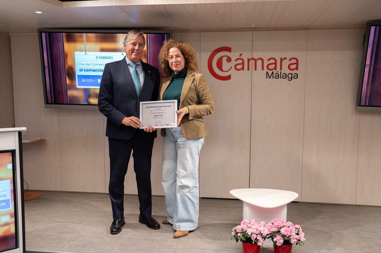 La Asociación de Empresarios de las Comarcas de Ronda y Guadalteba (Apymer) ha sido distinguida con el reconocimiento al «Destino Comercial» en el acto institucional celebrado ayer con motivo del Día del Comercio en Andalucía, que tuvo lugar en la Cámara de Comercio de Málaga.