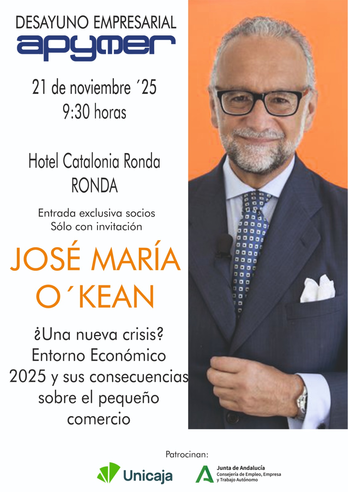 Desayuno Empresarial: “¿Una nueva crisis? Entorno económico 2025 y sus consecuencias sobre el pequeño comercio” Nos complace invitarle al Desayuno Empresarial que se celebrará el viernes 21 de noviembre a las 9:30 h en el Hotel Catalonia Ronda (centro). Contaremos con la participación del reconocido economista José María O’Kean, quien analizará la situación económica actual …